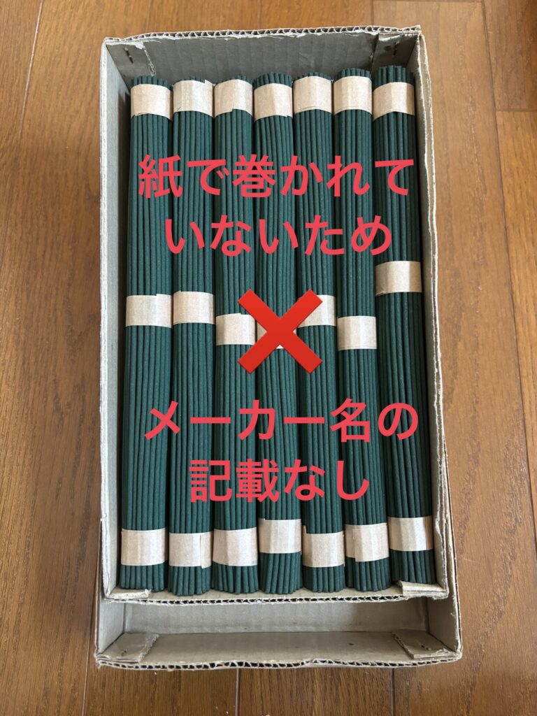 - お線香もしくは外箱(どちらか)にメーカー名の記載がないもの